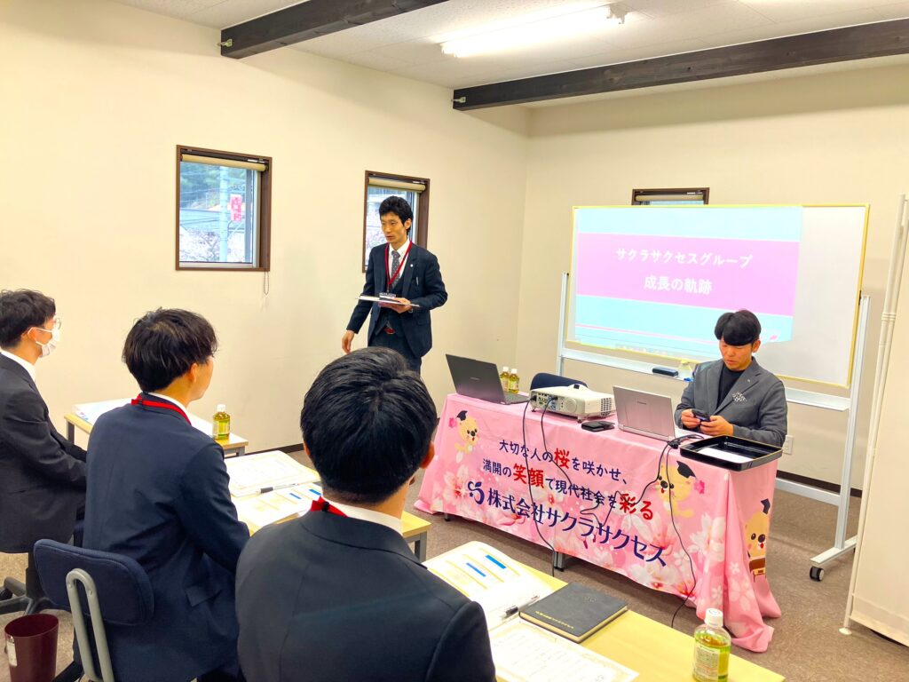 入社後の3日間は、社会人の基礎とサクラサクセスの歴史等を学ぶ研修を実施しています。
